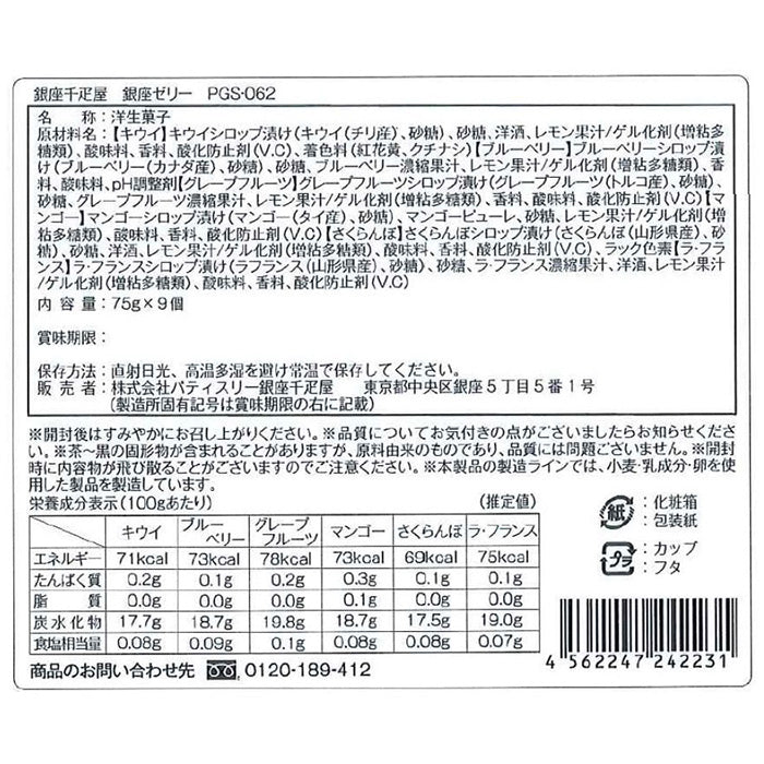 銀座千疋屋 銀座ゼリー 詰め合わせ 9個入 75g (0820009) ゼリー 千疋屋 フルーツ スイーツ プレゼント ギフト