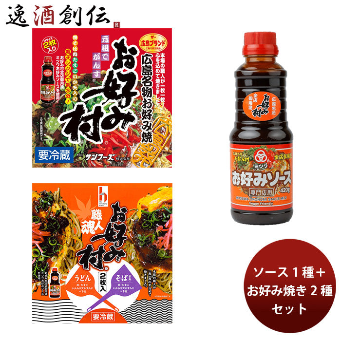 サンフーズ 冷蔵お好み焼(4枚)とソースセット お好み村 職人魂 ミツワソース