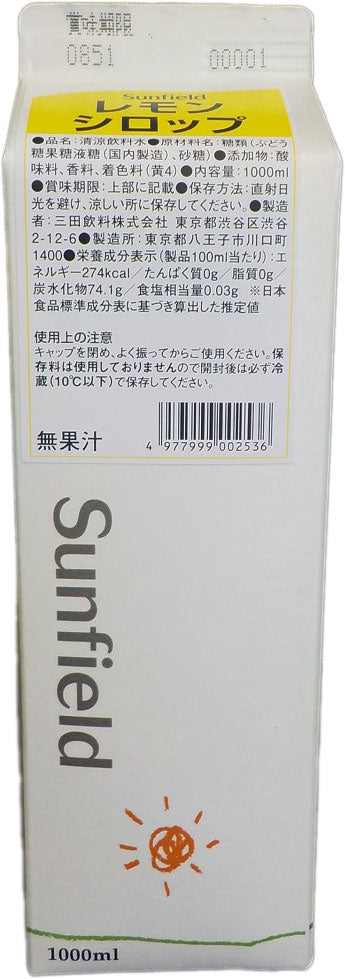 希釈 割材 シロップ 三田飲料 レモンシロップ 1000ml 1L 1本