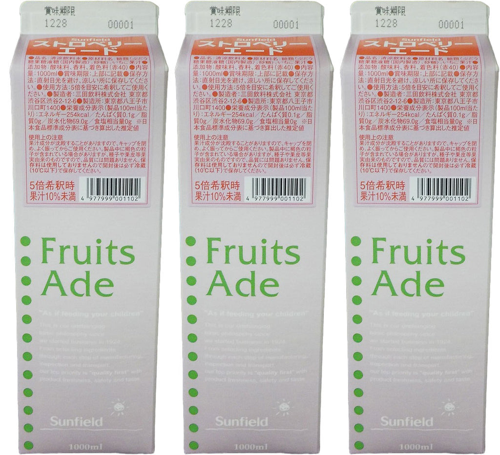 希釈 割材 シロップ 三田飲料 カクテルベース ストロベリーエード 1000ml 1L 3本 のし・ギフト対応不可